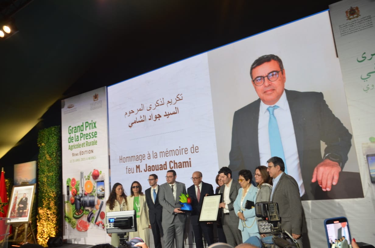 جرى، اليوم الجمعة، بمكناس، تكريم الراحل جواد الشامي المندوب العام السابق للمعرض الدولي للفلاحة، على هامش تتويج الفائزين بالجائزة الكبرى للصحافة في المجال الفلاحي والقروي.