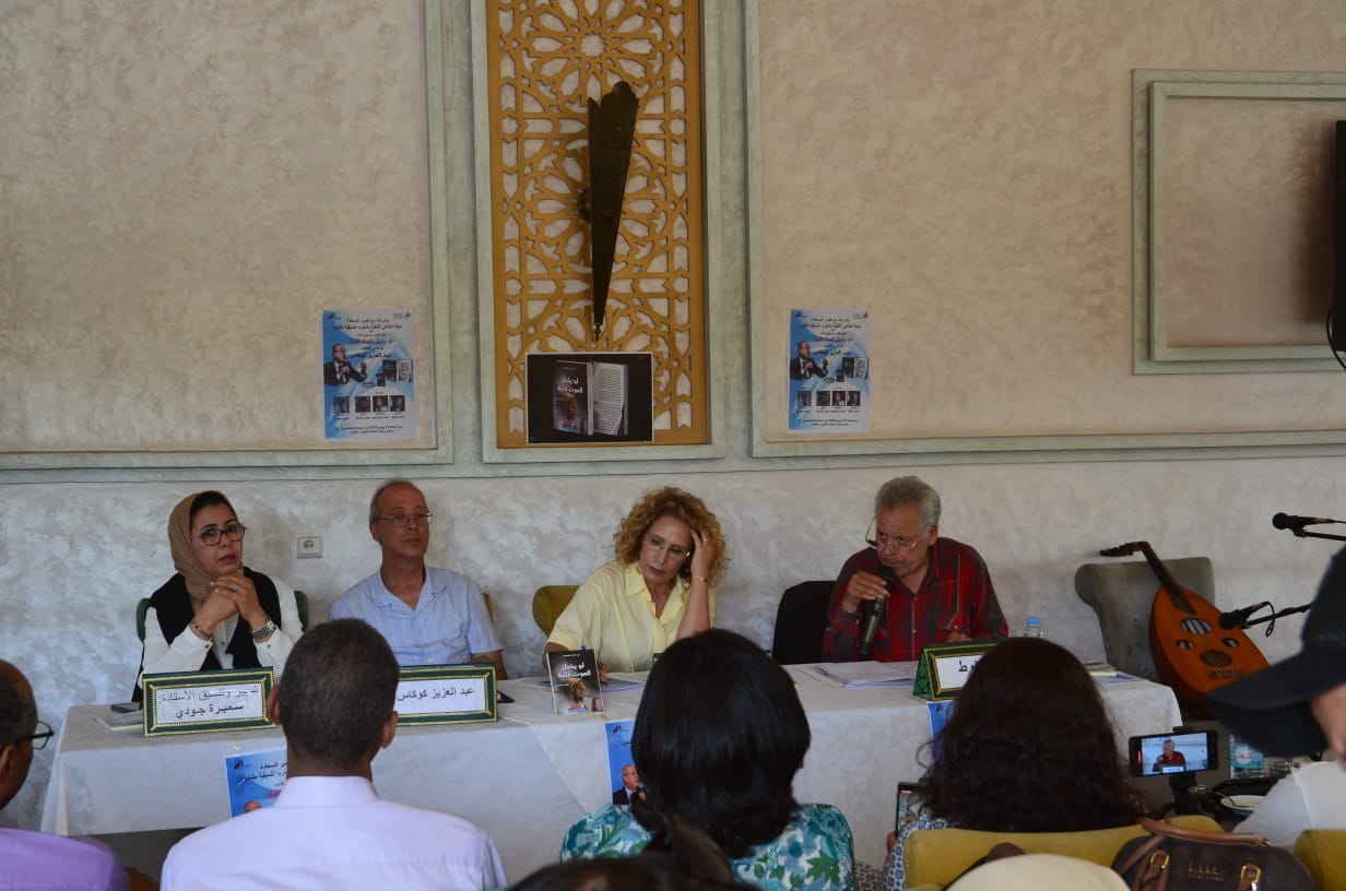 وجرى قبل ختم الجلسة الثقافية توزيع شواهد تقديرية على محمد علوط وسعاد ازعتراوي والمؤلف المحتفى به عبد العزيز كوكاس والفنان سعيد الساهل.