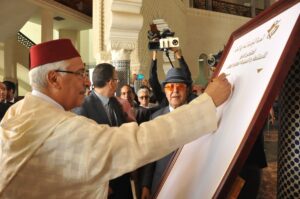 في فضاء ساحة الاستقبال بالمركز الثقافي والإداري لوزارة الأوقاف والشؤون الإسلامية، نصبت خيمة صحراوية أصيلة، جسدت عمق الانتماء وقوة الروابط الوطنية، في تذكير برمزية الوحدة الترابية للمغرب، كما عبر عنها جلالة الملك محمد السادس :