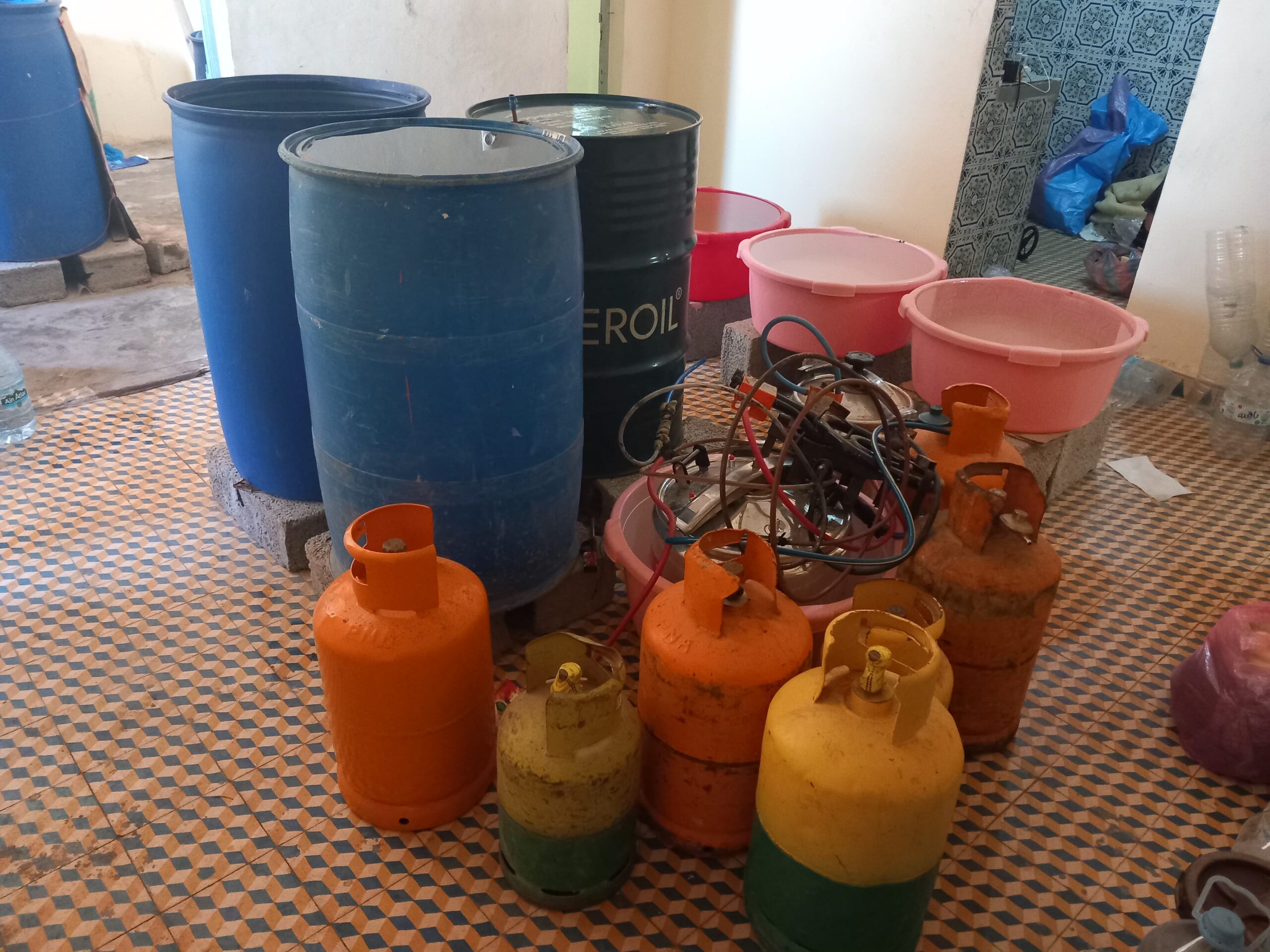 أمن العيون يحجز 30 لترا من مسكر الماحيا الجاهز للترويج و1400 لترا من المواد الأولية المخمرة