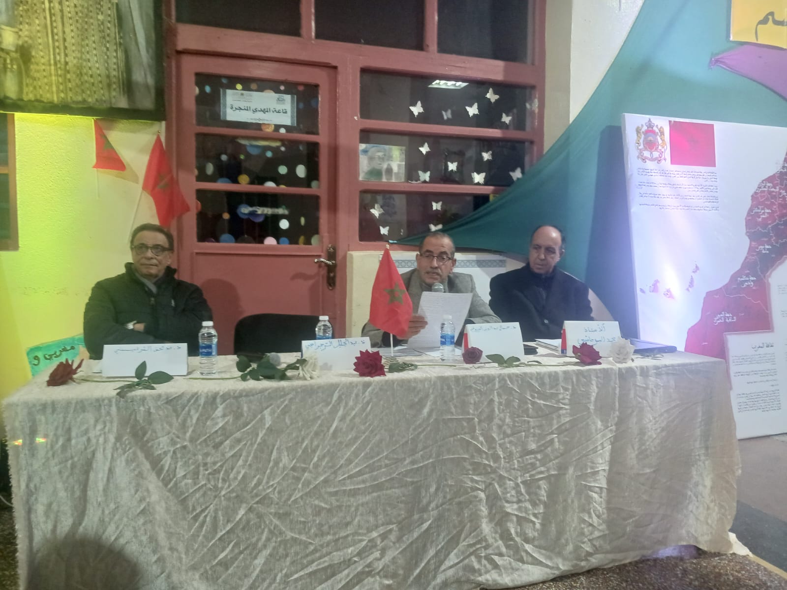 الحفل الذي نُظم من طرف نادي الفنون التشكيلية والتربية الجمالية والرواية، شارك فيه كل من الأستاذ عبد الحق السرغيني، الأستاذ محمد بوحاشي و الأستاذ جمال عبد الدين المرزوقي.