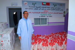 في إطار الاستفادة من حملة إفطار الصائم 1447هـ – 2026م التي يشرف عليها صاحب السمو الشيخ محمد بن زايد آل نهيان، رئيس دولة الإمارات العربية المتحدة، وبتنسيق مع ولاية جهة العيون الساقية الحمراء، قامت ” جمعية الإحسان لمحاربة الهشاشة الإجتماعية بالعيون” بتوزيع مجموعة من الحصص الغذائية لفائدة عدد من الأسر في وضعية هشة.